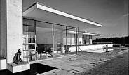 In the early 1960s, the Johnson Wax company built its first European branch office in Mijdrecht, Netherlands. They asked Dutch architect Huig Maaskant for an "unsual design" and he created this boomerang-shaped structure suspended above a pond on angular concrete columns. (Photographer unknown, circa 1965)