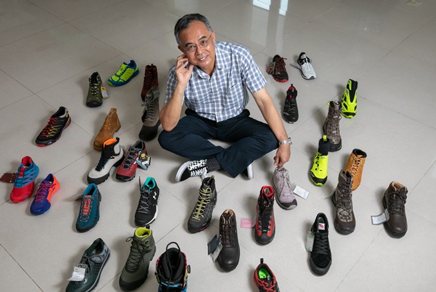「我號稱從海拔三、四千,溪谷、鄉村、城市、野外到海洋,要穿的鞋我都有做!」鈺齊董事長林文智眼前洋洋灑灑20幾隻休閒鞋、登山鞋、自行車鞋到重機鞋,只是冰山一角。